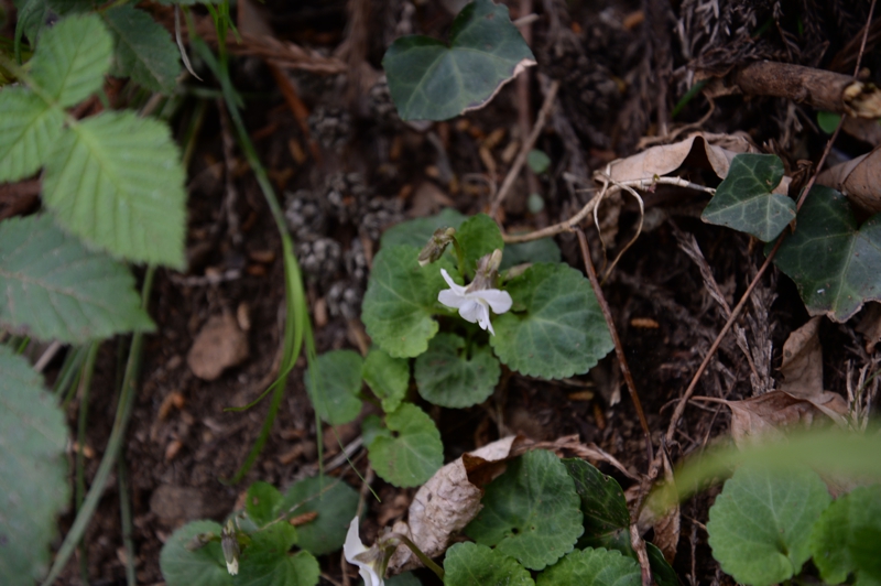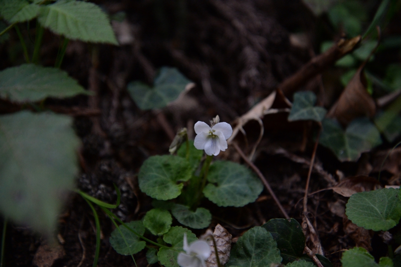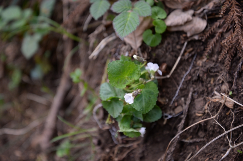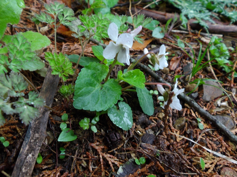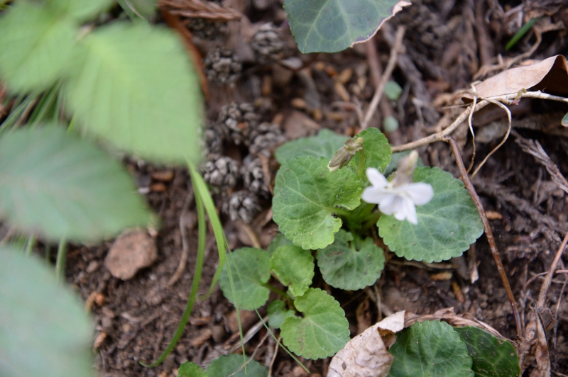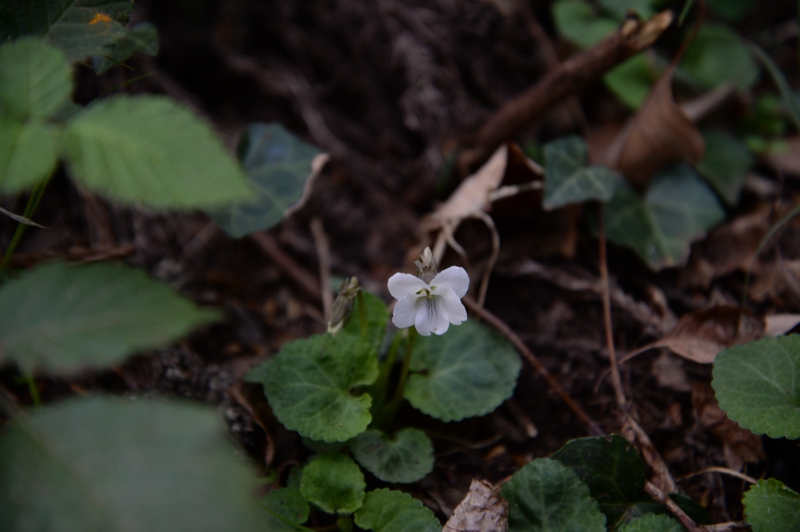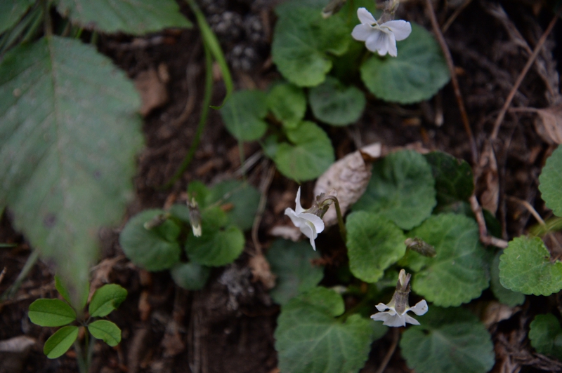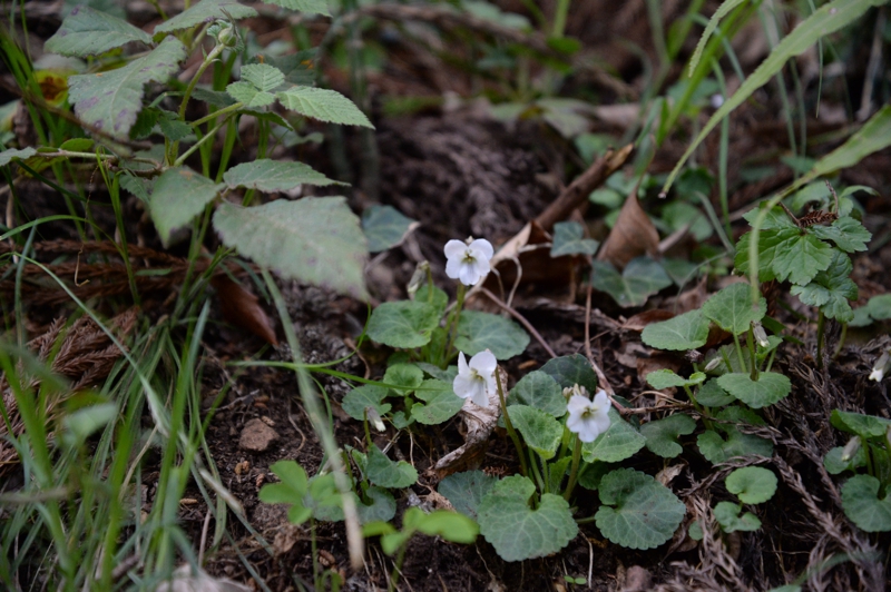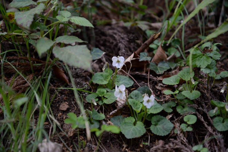 スミレ科 スミレ属、 草丈 5~15cm、 花期 4~5月 本州~九州に分布し、山地の林下や林縁に生える多年草 特徴として、 ・白花で唇弁に紫条の筋があり、側弁には毛が有る。(側弁に毛が無いものはマルバスミレと呼ばれるが希薄で、このケマルバスミレも含めてマルバスミレと呼ばれているようだ。) ・葉は卵形で葉や葉柄に毛が多い。(毛が無いものは、マルバスミレと呼ばれる。 ・地上茎は無い。