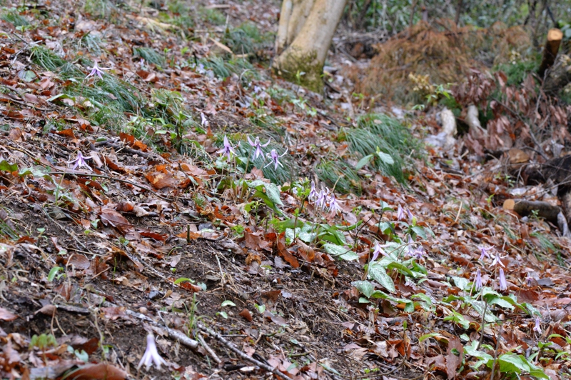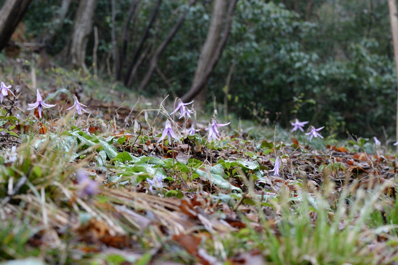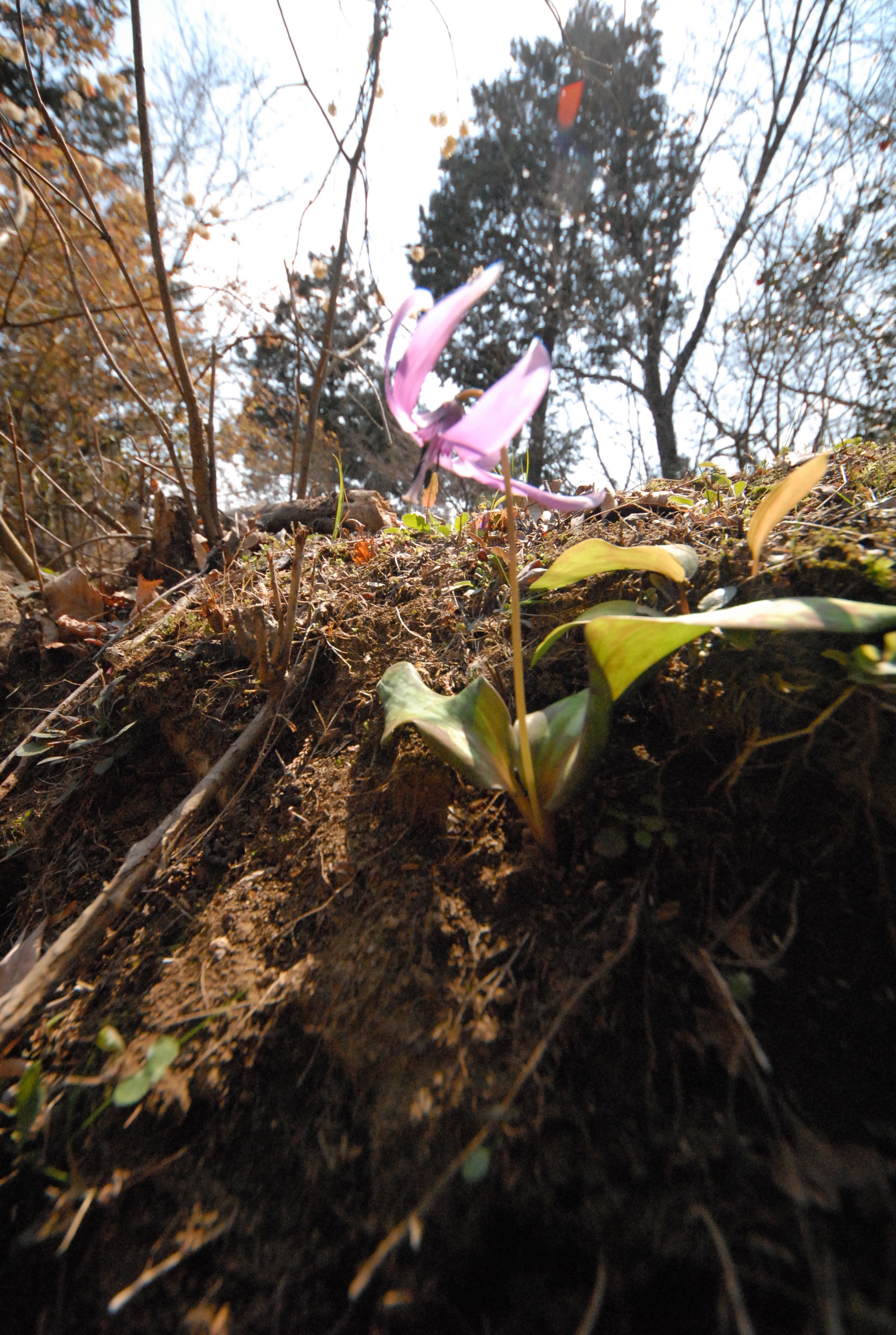 古名カタカゴの転訛で、「傾いた、かご状の花」ともいわれる。日が当たると花びらが強く反り返る花の形からこの名がついた。「スプリング・エフェメラル(春植物)」の一つで、早春、落葉樹林の林床に群生し、ほかの植物が育つころには地上から姿を消す。種子の先につく物質のエライオソームはアリの好物で、アリに種子を遠くまで運ばせ広がる。花茎(かけい)の高さは20〜30cm。茎の先に淡紅紫色の花を下向きに1個つける。葉はやや厚めで、通常は紫褐色の斑紋が入る。