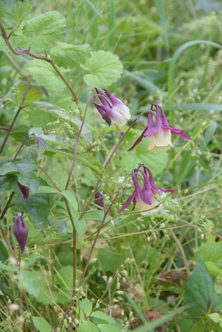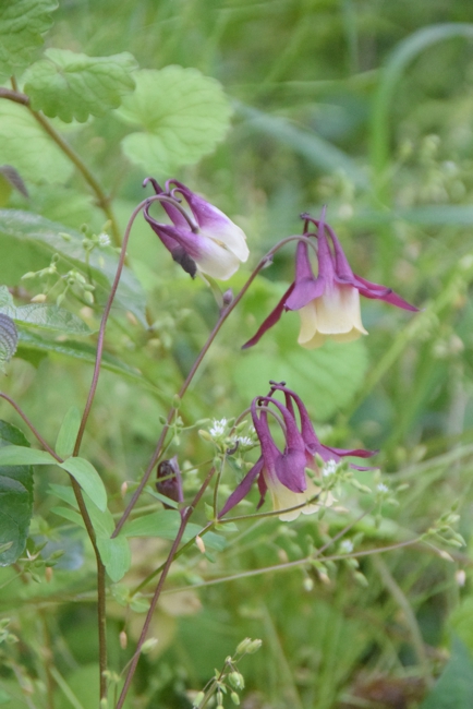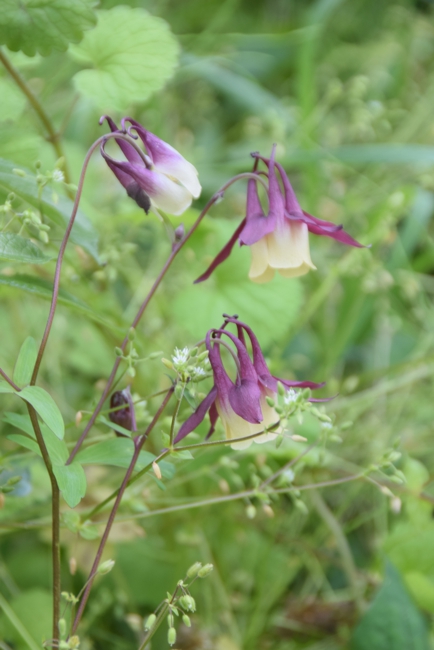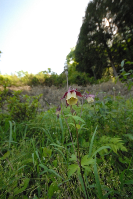 茎は、高さ30-70cmくらいになる。根出葉は束生し、2回3出複葉で、葉柄の長さは15-25cmになり、茎の上部につく葉は1回3出複葉になる。小葉は扇形で、葉の先が2-3中裂し、裂片がさらに2-3浅裂する。花期は6-8月。花は下向きに咲き、花の径3-3.5cm、萼片は5個で狭卵形、花弁も5個で長さ1.2-2.5cmになる。花弁の基部はうしろに長く伸びて距になり、内側に巻き込む。花弁は黄色、萼片と距の色は、帯青-帯紫褐色になる。果実は袋果となり、腺質の毛が密生する。