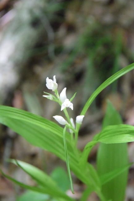 黄色い花を金、白い花を銀に例えることがある。花が黄色いキンランに対して白いのでギンランと名づけられた。雑木林の中に生え。草丈20〜40cm、キンランやササバギンランより小さい。葉は細く、先端がとがる長楕円で3〜6個つき、基部は茎を抱く。茎の先端に長さ1cmほどの白い半開き、または殆どが開かない花を数個つける。花には短い距がある。苞葉は短く、花序より長くならない。