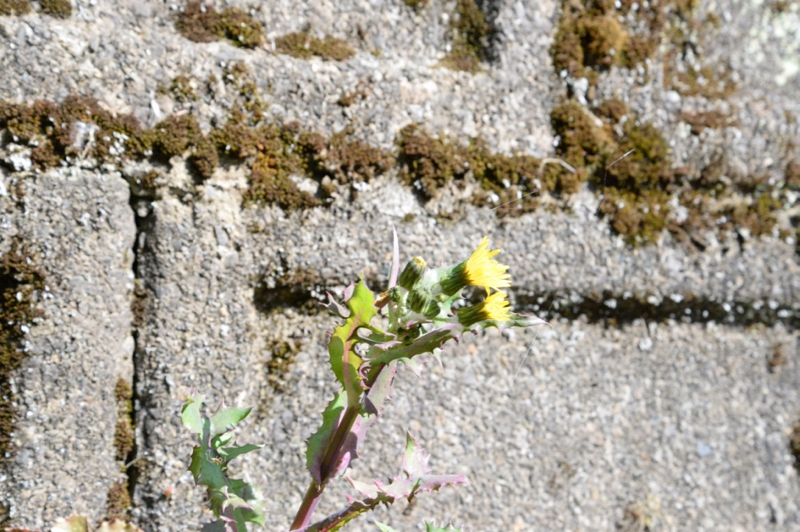 明治時代にヨーロッパから日本に入ってきた帰化植物。同属のノゲシと似ているが、草丈が50〜120cmで大形。葉は堅くて光沢があり、ふちには触ると痛い多数の鋭いとげをもつなど、全体的に荒々しく見えることから名がついた。またノゲシは茎を抱く葉の基部が後方に三角状に降り出すが、本種は丸く下向きに巻く。黄色い頭花は直径が2cmほどで、すべて舌状花でできていて、ノゲシよりも細い。ほぼ全国の道端や荒れ地などに自生している。