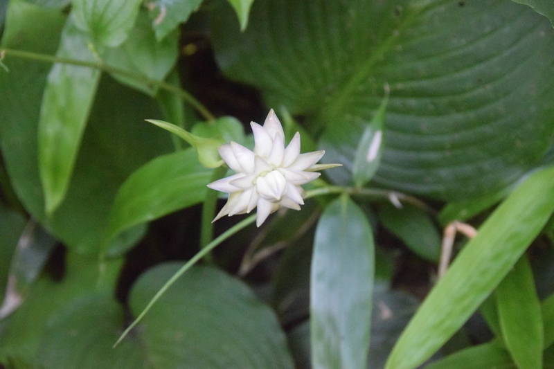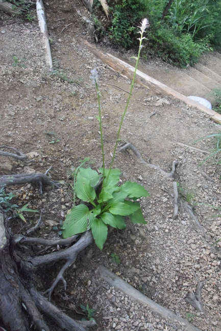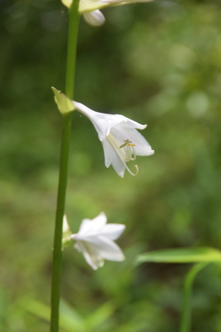 擬宝珠(ぎぼうしゅ)とは、橋の欄干にある柱の上につけられた葱坊主(ねぎぼうす)のような形の飾りのこと。オオバギボウシのつぼみが、この擬宝珠に似ているのが名前の由来だが、果実は擬宝珠よりもはるかに細く、似ているとは言えない。花茎は高さ0.5〜1m。白〜淡青紫色で、長さは4〜5cmの花を多数咲かせる。葉は長さ約30cmもあり、その名のとおり大きい。新芽から若芽をウルイと呼び、山菜として食べる。ウルイはアイヌ語起源の言葉。最近は栽培され、販売もされる。