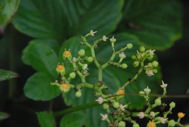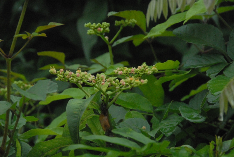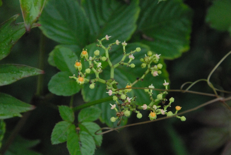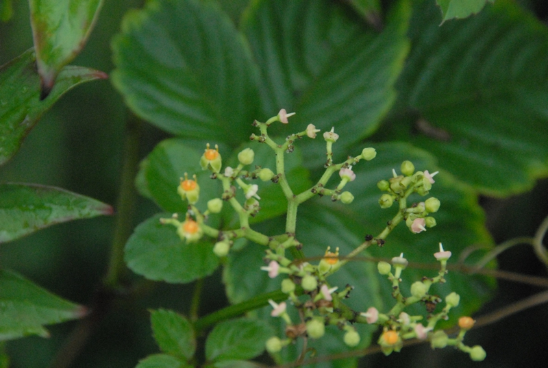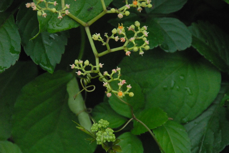 ヤブのような場所でも繁殖し、ほかの植物に覆いかぶさって枯らすほどなので「藪枯らし」と名前がついた。また手入れの悪い物置小屋や草むらなどに覆いかぶさり貧乏くさい場所に変えてしまうので、「ビンボウカズラ」という別名までつけられた。つる性で、巻きひげを出して他の植物にからみつき、長さ2〜4mにも伸びる。地下茎を長く伸ばして旺盛に繁盛する。花は直径5mmほどで、果実は黒く熟す。葉は5枚の小葉からなる複葉で、葉には柄がある。