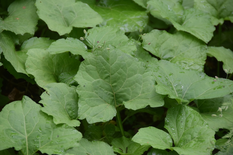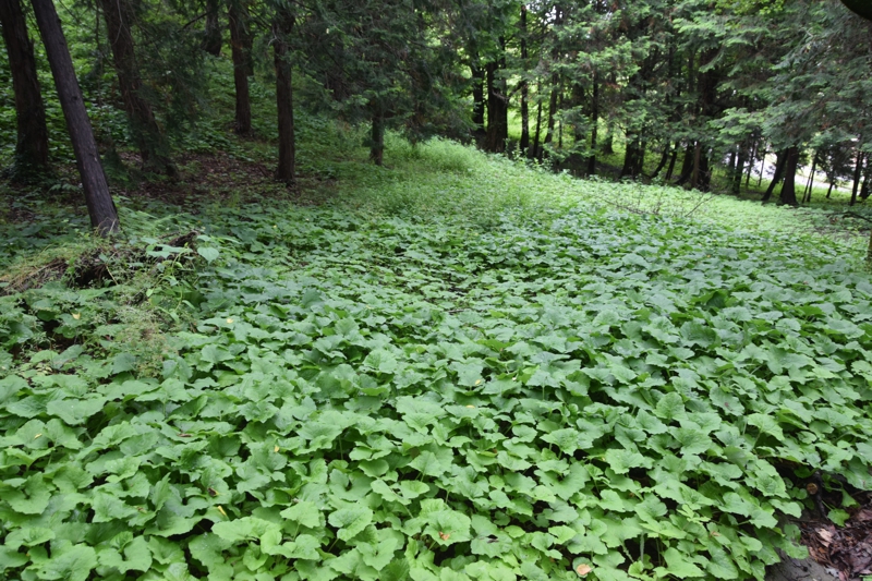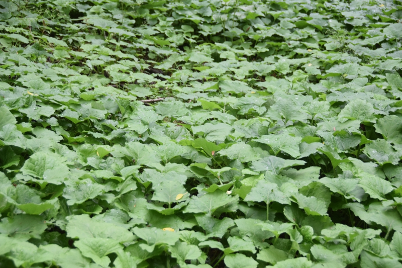 葉がフキに似ているがフキではないので区別するためノブキの名がついた。湿った林や登山道沿いでよく見かける。草丈は50〜80cmになり、上部で枝分かれして花をつける。頭花は外側に雌花、中心部に雄花が集まり、白いデコレーションケーキのように見える。花の後、雄花は結実せず落ち、外側の雌花は放射状に果実が実って花のように見える。花端が粘り、人や動物にくっついて運ばれる。登山道でよく目にするのはこうした散布の仕組みがあるからである