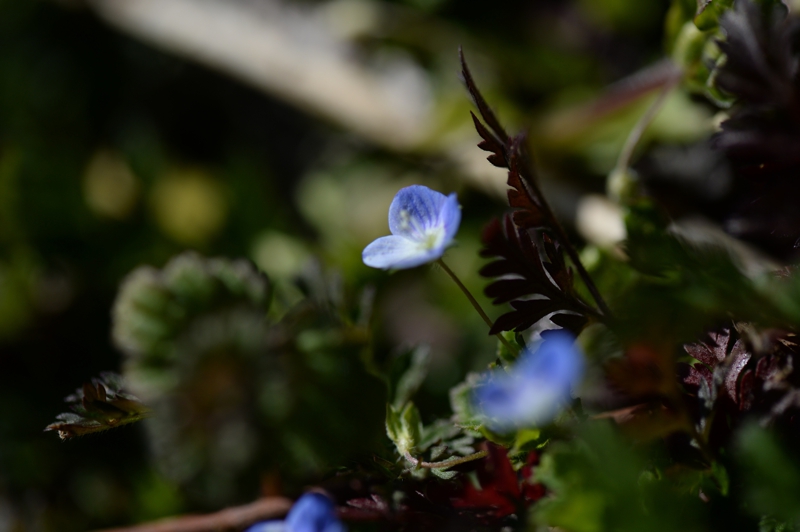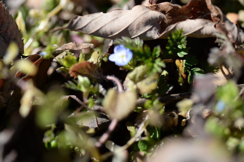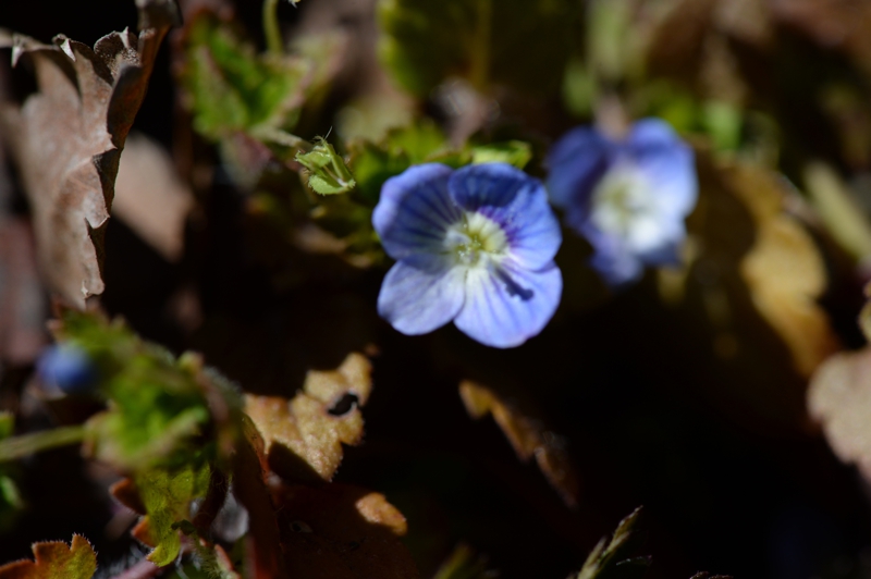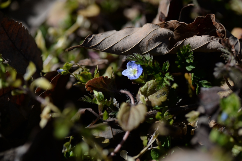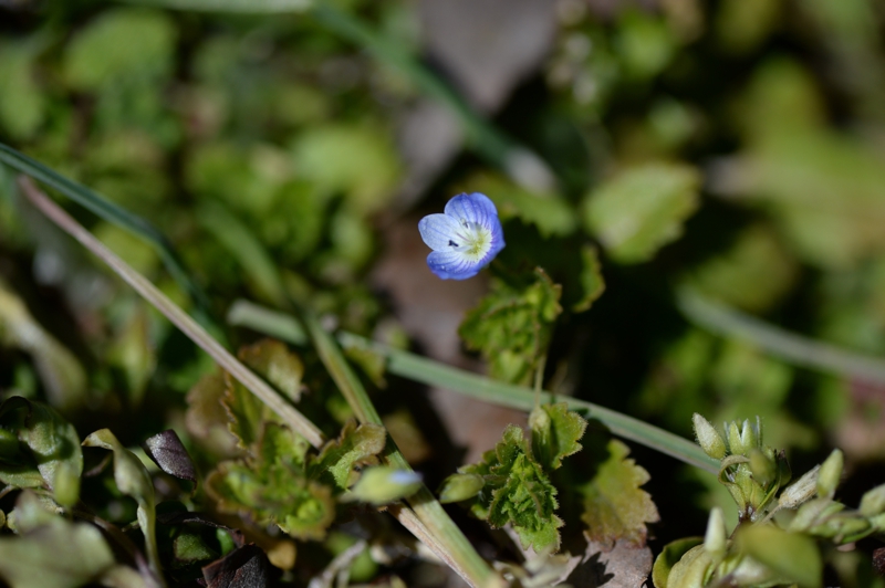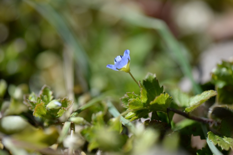 同属のイヌノフグリより全体的に大形なので、この名前がつけられた。草丈は低く、茎は根元でよく枝分かれして地面をはうように伸びる。絨毯を敷いたように広がり、青紫色の花が散りばめられたようにたくさん咲く。花の直径は8〜10mmで、長い花柄があり、昆虫が蜜を求めてとまると花が大きく傾き、バランスを崩した昆虫にうまく花粉がつく。一見4枚の花弁に見えるが、根元ではくっついていて濃い青色のすじ模様がある。道端や畑などで見られる