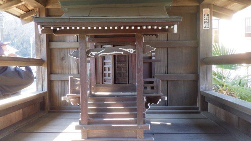 | 本堂 | 正面三間「太子堂」の額をかかげ上部狐格子、横三間半、三方欅丸柱にて三寸廊下あり一間の向拝をつく。寄棟御堂造り。明治初年焼失のため、八王子市散田太子堂を移築して今日に至った。 |